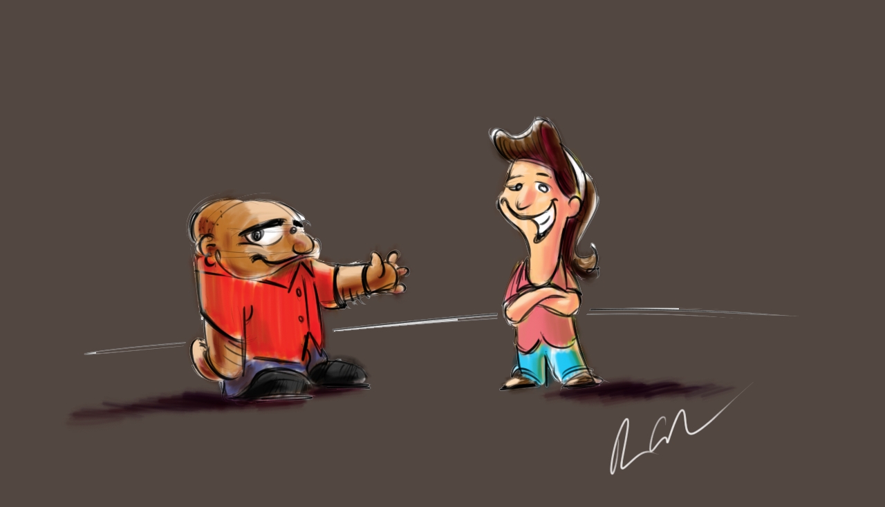 I thought I’d post this quick color sketch I did of my buddy Somchi and his fiance Kristi. Critiques are welcome. Thanks.