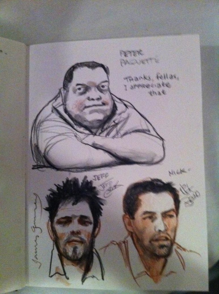 One of the members of the audience was the creator of Dinotopia, James Gurney. He did caricatures of us all as we talked.
