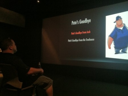 When we got back from a goodbye lunch, there was a department meeting in the acorn theater. They made me sit in a chair in the front of the room while I watched a couple videos: