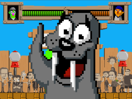 A few months ago, I thought it would be fun to create a game based off our PG-13 puppet show “Treehouse Studios“. I wanted to create a NES style fighting game so Nick and I could “fight” in front of the department on my last day. I started playing around a bit in a program called Game Maker and quickly realized I didn’t have the programming chops to do EXACTLY what I wanted with the game. I recruited my brother Jeff, who is a self-taught game programmer, and all of my game-play ideas quickly became reality.